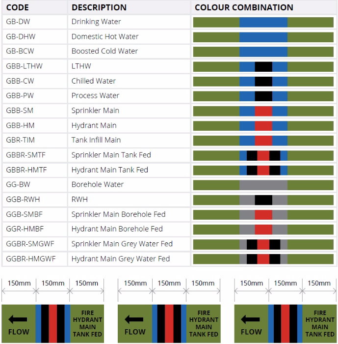 The table below shows examples of how popular pipeline service carrying water products should be marked.